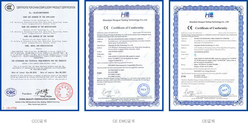 作為一家與時俱進,不斷創新的公司,金徽科技股份有限公司始終將產品質量視為企業生命。公司憑借在LED驅動電源上豐富的研發經驗、嚴謹的質量管理,雄厚的技術力量,打造出具有高品質的LED電源產品。金徽產品已通過國家CCC強制性質量認證,以及CB,CE,FCC, RoHS等多項權威產品認證,旗下品牌JAH ,HC享譽海內外。